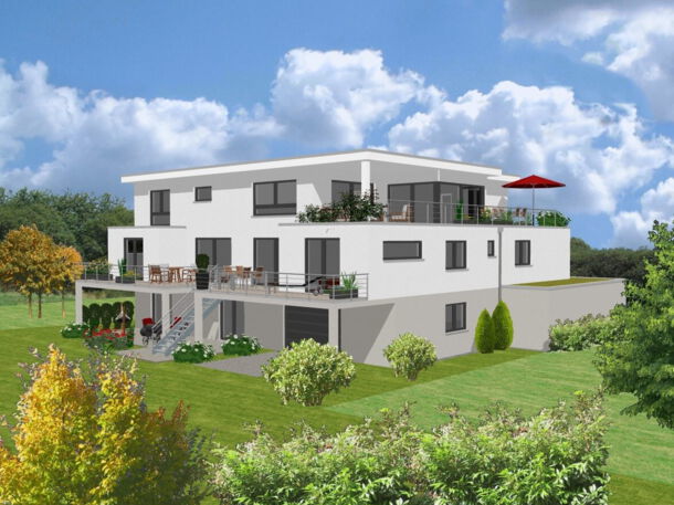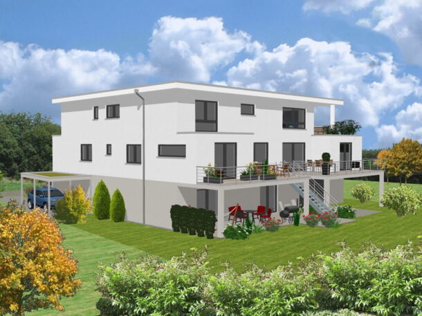 - Luxuriöses, hochwertig ausgestattetes Dreifamilienhaus mit modernem Flachdach