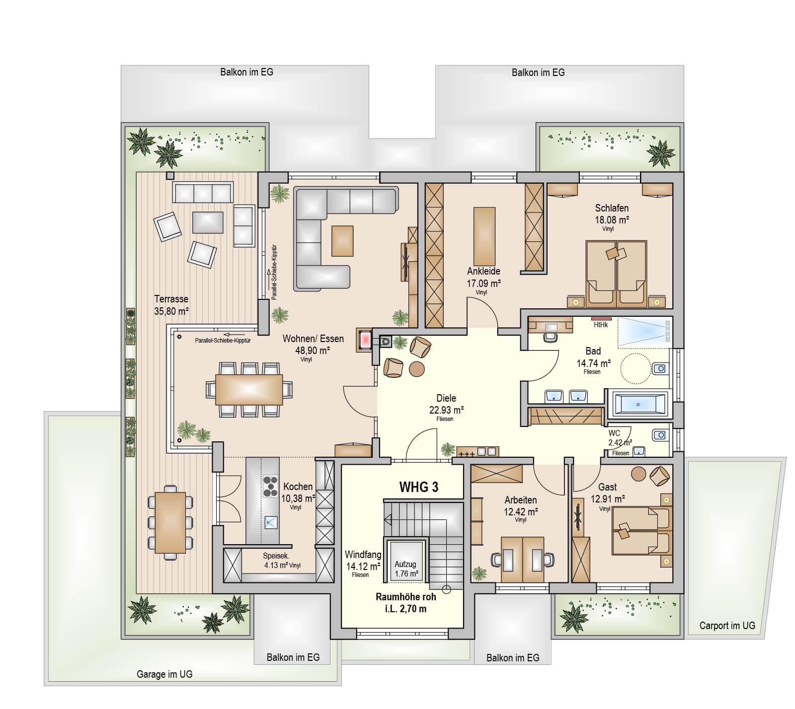 Diele: je 14,95 m²